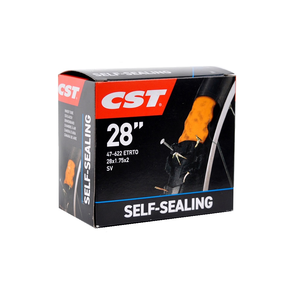 Камера CST 28×1.75–2.00″ AV 35 мм (самоклейка) — надёжная бутиловая камера для универсальных горных, городских и туристических велосипедов, оснащена длинным вентилем и комплектом самоклеящихся латок для ремонта.
