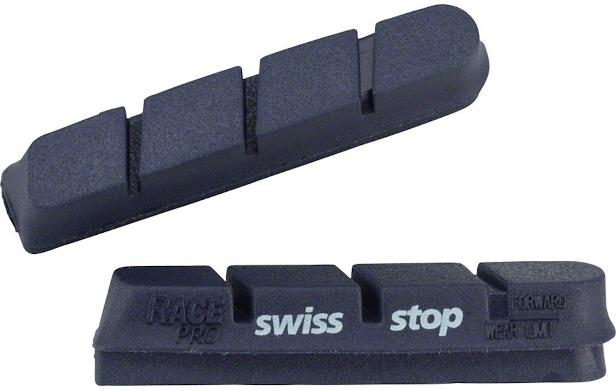 Высокоэффективные тормозные колодки (резина) для обеденных клещевых тормозов Campagnolo. Предназначены для карбоновых ободов DT Swiss с тормозной дорожкой PR1400 OXiC. Имеют отличную тормозную динамику при дождевых условиях и хорошо охлаждаются благодаря трем большим вентиляционным прорезям. Выпускаются всемирно известным премиум-производителем велосипедных компонентов Swissstop.