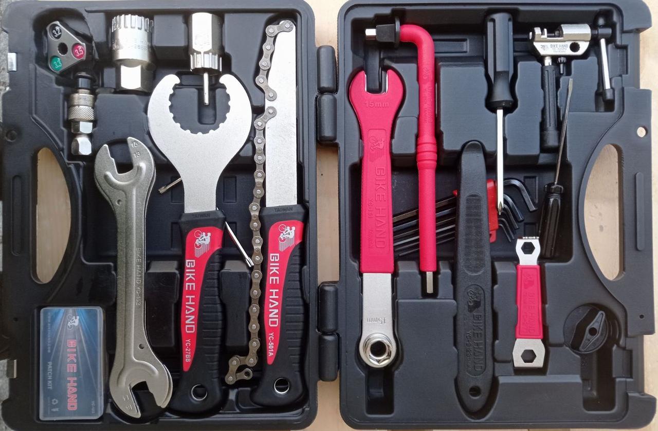 Набір інструментів для домашнього обслуговування велосипеда, в пластиковому боксі,