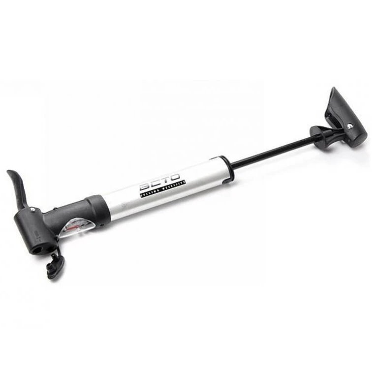 Beto CLD-023G Алюминиевый насос с подвижной головкой и Т-образной пластиковой ручкой и манометром. Подвижная двойная головка для двух типов ниппеля: Presta, Schrader. Максимальное давление 80 PSI. В комплекте: крепление и 2 болта. Цвет: серебристо-черный.