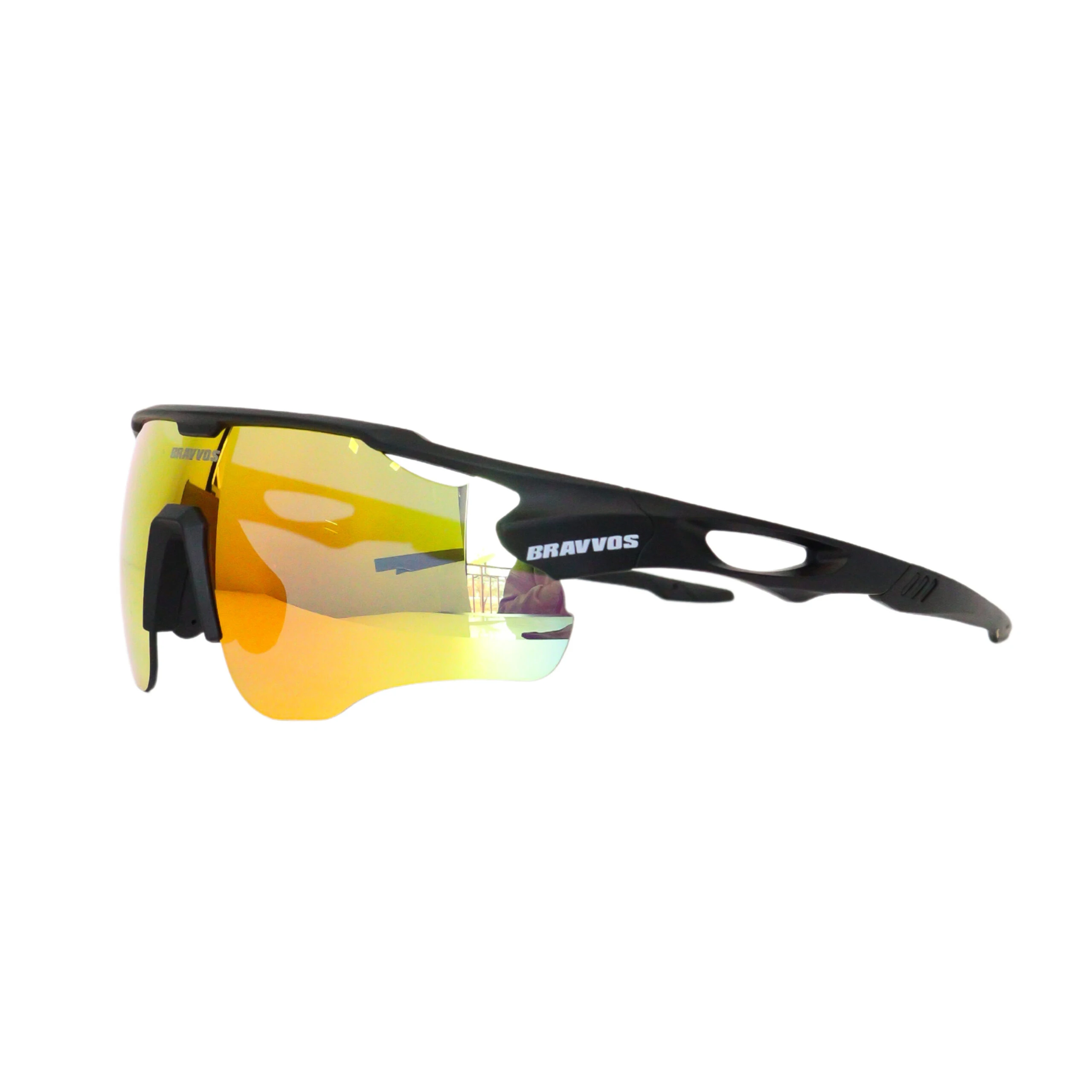 Очки BRAVVOS SS‑956 — лёгкие спортивные солнцезащитные очки с чёрной полуободковой оправой и 5 комплектами сменных цветных линз для любых условий катания.
