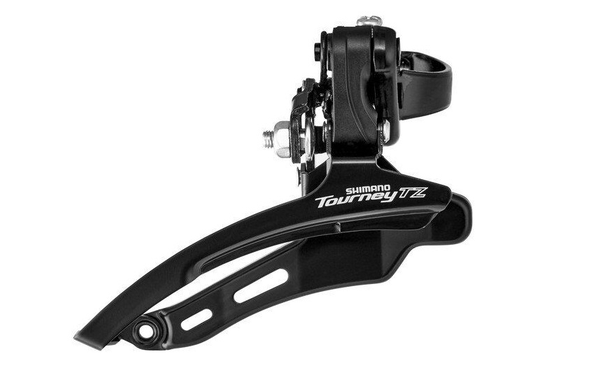 Переключатель передний Shimano FD-TZ500 с нижней тягой, то есть тросик подходит снизу, относится к исходному уровню Tourney.