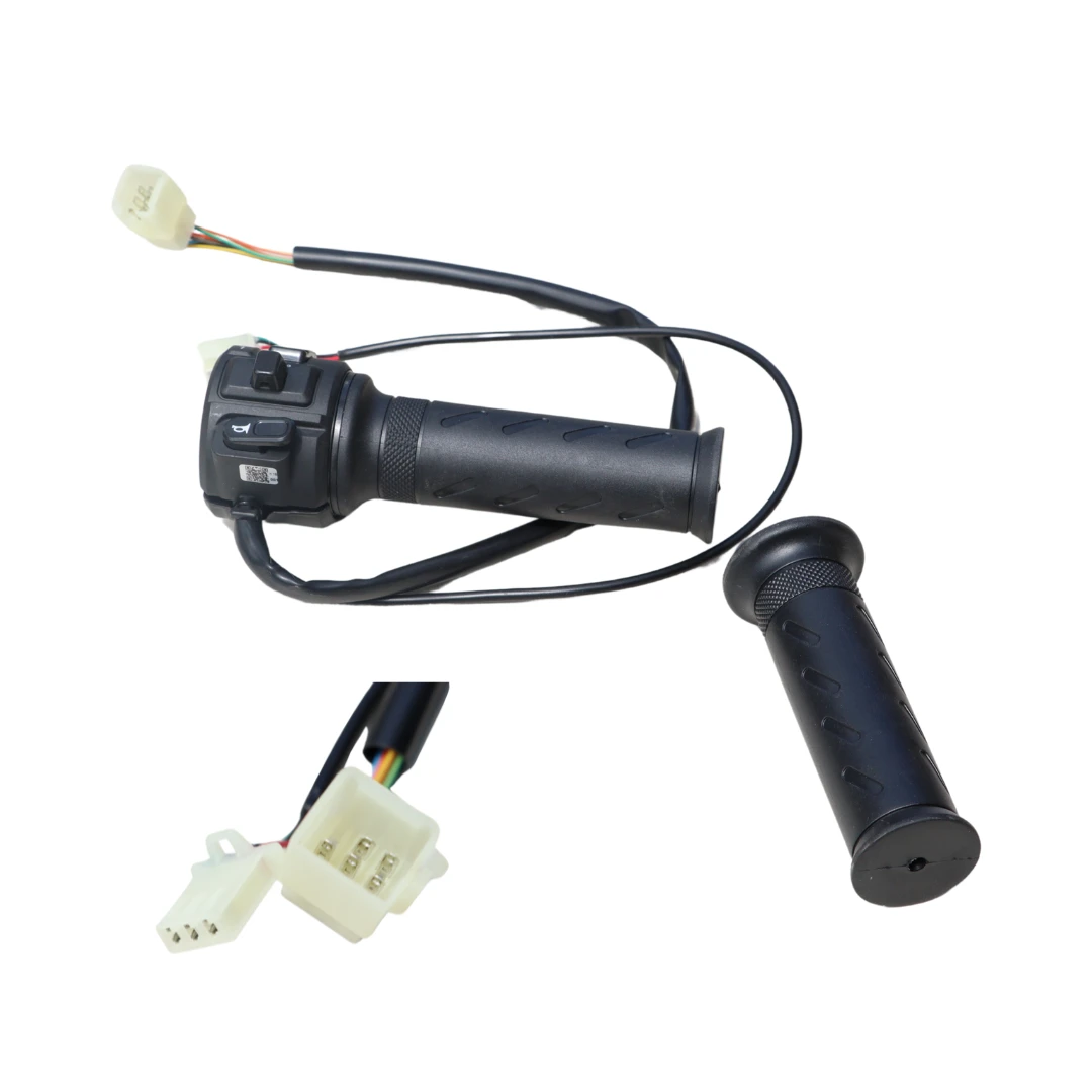 Установка: снимите обычный грипс с правой стороны руля, наденьте рукоять газа, закрепите винтом (при необходимости) и подключите разъём к контроллеру. Проверьте корректность работы газа перед поездкой.