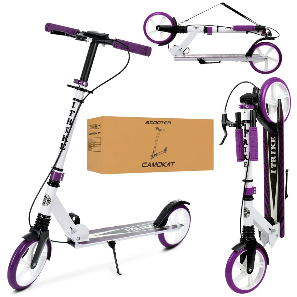 Двухколесный самокат Itrike SR 2-049-1 — прекрасный вариант для катания по городским улицам. Каркас модели представлен надежным алюминием. Материал придает транспорту маневренность, гарантирует полную безопасность райдера. Прочная конструкция способна выдержать значительные нагрузки. Транспортное средство укомплектовано колесами из полиуретана. Тормозить и снижать скорость райдеру поможет ручной тормоз. Высоту руля самоката можно регулировать под рост гонщика.
