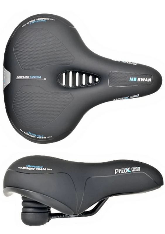 седло из серии MED • пункт назначения: город, треккинг, • материал корпуса: полипропиленовый пластик • Воздушный поток: анатомическое отверстие в конструкции седла. • наполнитель: пена с эффектом памяти • материал покрытия: искусственная кожа (ПВХ) • Reflex: светоотражающая отделка на задней части седла. • Эластомер: система подвески стержня, снижающая вибрацию и вибрацию. • стержни: стальные, черные со шкалой • размеры: 251 х 209 мм, вес: 809 г • упаковка: вешалка ProX (879 г)