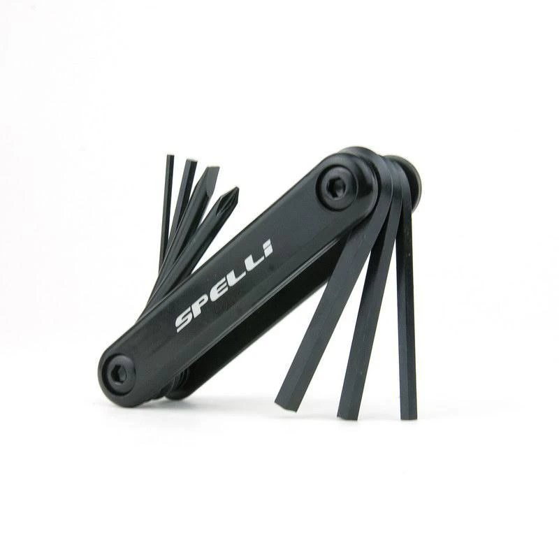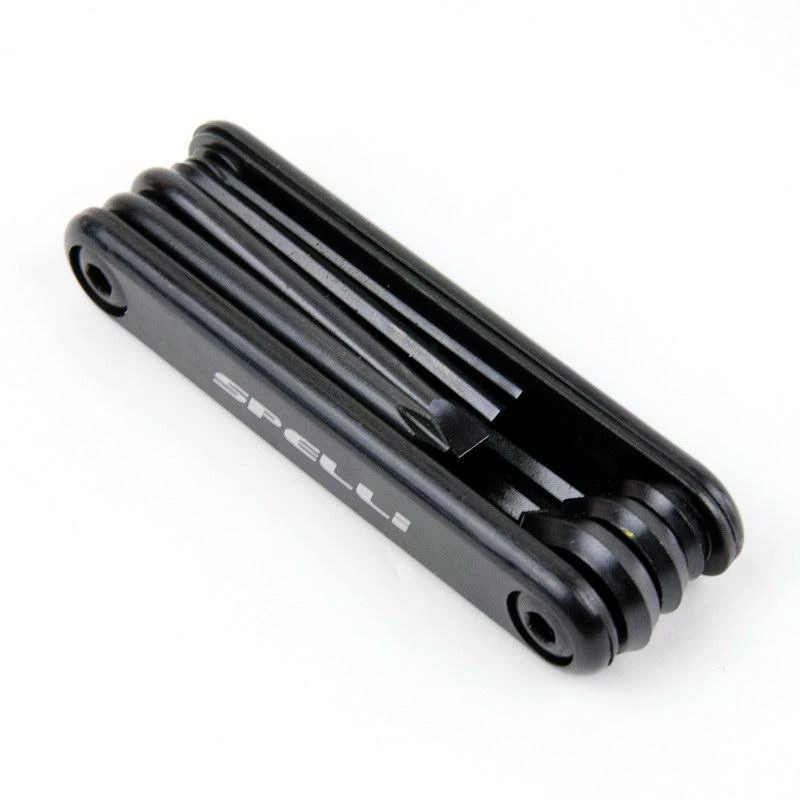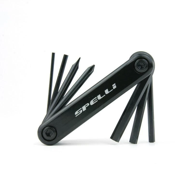 Профессиональный набор раскладных мульти-ключей Spelli SBT-267 Black из инструментальной стали для сборки и ремонта велосипедов. Набор состоит из 7-и предметов: шестигранники 2, 3, 4, 5, 6 мм., плоская и фигурная отвертка. Удобная форма корпуса из стали с пластиковыми накладками обеспечивает дополнительный комфорт.
