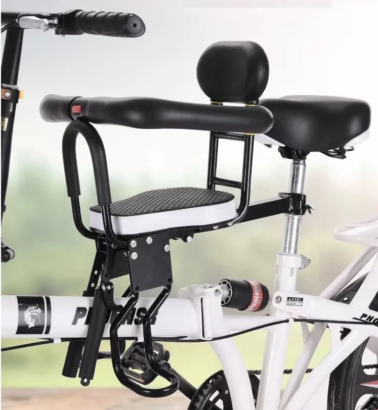 Детское велосипедное сиденье предназначено для детей 2-5 лет. Благодаря ему вы можете кататься на своем велосипеде вместе со своим ребенком. Сидение легко и быстро крепится на раму взрослого велосипеда, позволяет детям удобно сидеть и держаться. Велосипедное сиденье имеет комплект подножки с фиксаторами для ног. Вашему ребенку будет удобно ехать, он будет надежно держаться в седле. С детским сиденьем, вы сможете наслаждаться прогулкой на велосипеде вместе с ребенком, ехать на желаемой скорости, не беспокоиться за безопасность поездки. Сидение подходит под все основные типы современных велосипедов с верхней рамой. Основные характеристики: материал: металл, пластик, резина; крепление: на раму велосипеда; возраст: 2-5 лет; комплект: седло, подставки для ног; цвет черный.