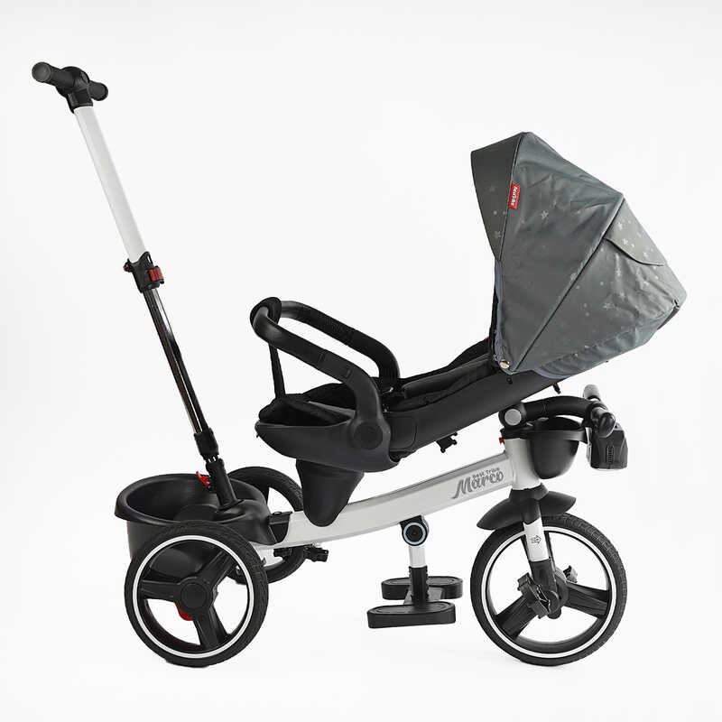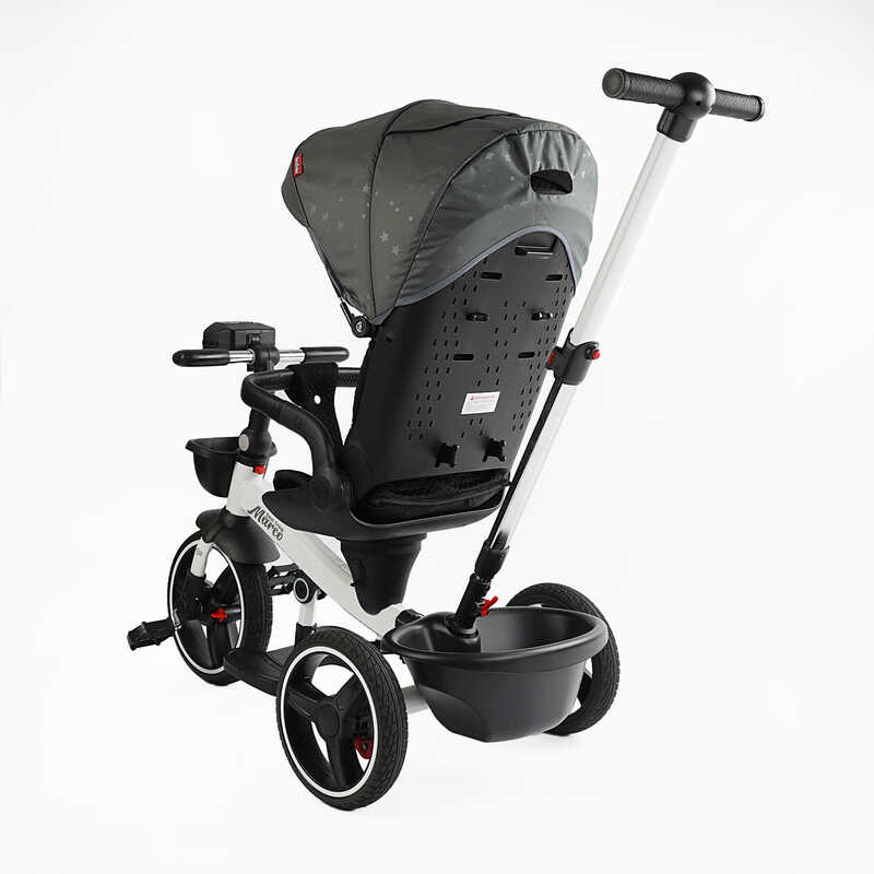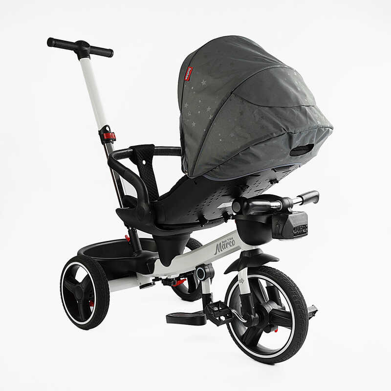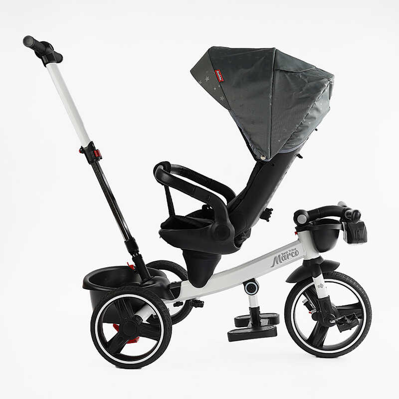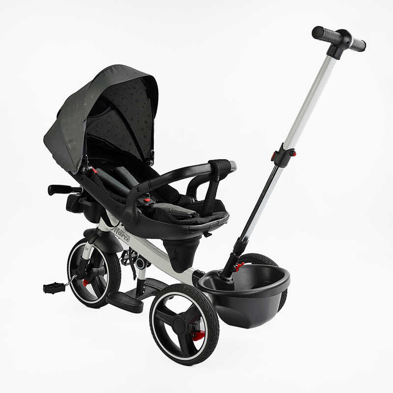 - Функция “Свободный ход” — ребёнок может держать ножки на педалях, а движение контролируется родительской ручкой.