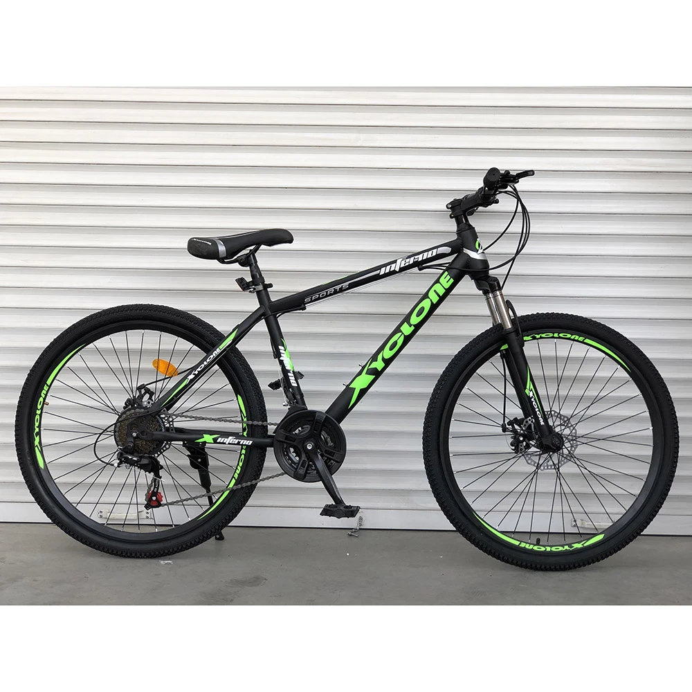 Горный велосипед оснащен точечными переключателями скоростей и двойным ободом колес, что делает транспортное средство более прочным и устойчивым от повреждений во время езды по неровностям.